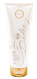 Em minhas caças olfativas passo pelo corredor de cosméticos de uma Farmácia. Sempre via a marca Ciclo Cosméticos por lá, mas as embalagens nunca haviam chamado a minha atenção. Até que um dia a curiosidade foi mais forte e.....pego um frasco chamado Dolce. Adivinhem! o bichinho tem a fragrância do The One! e encontrei por R$12,90 !! claro que comprei. Tenho usado à noite, perfuma melhor do que hidrata, então está mais para um desodorante em creme para o corpo. A marca comercializa o hidratante e um kit que acrescenta o perfume sólido. Vi o kit com preços que variam de 25 a 54 reais.