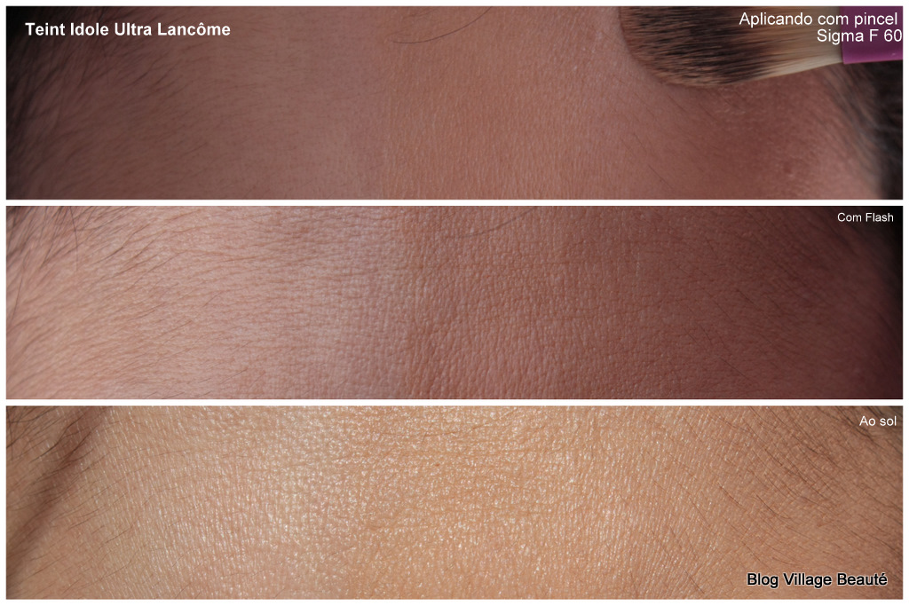 Aplicando com o pincel da Sigma, em foto sob flash, e foto sob o sol.