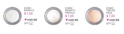 * Cor: A cor da base de sombras ESB 03 é um cor de pele bege com fundo quente.